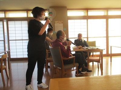 デイケアにて、利用者さんから職員に歌のリクエスト!