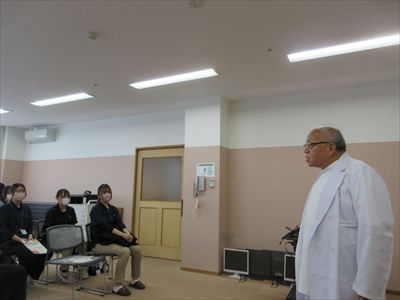 施設長の挨拶の後、現場で働く卒業生が施設を案内しました。