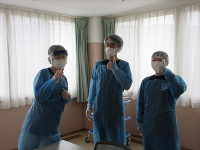 この日は看護師がガウンテクニックを説明🤗