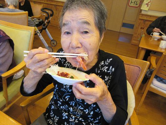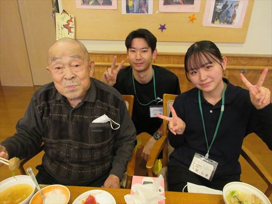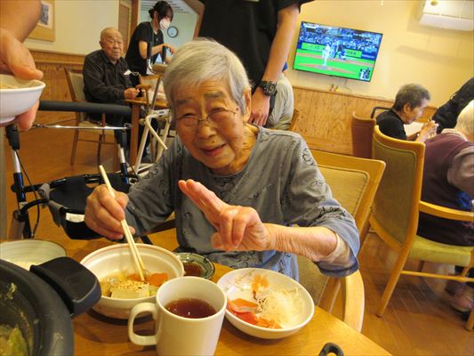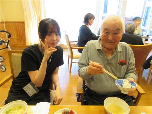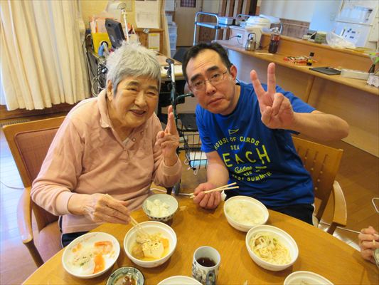 利用者さんも「私はもう食べれないから、若い人の食べっぷりを見せて!」と