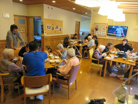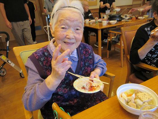 利用者さんと鍋をお腹いっぱい食べてもらいました😄