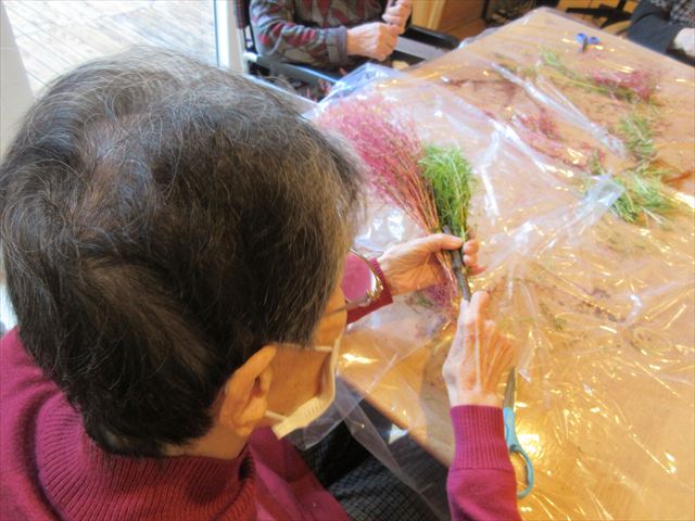 教えて頂きながら紅葉したコキアでほうきを作りました。