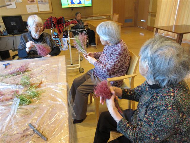 教えて頂きながら紅葉したコキアでほうきを作りました。