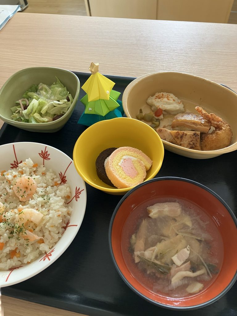 🎄メリークリスマス🎅投稿日: 2025年12月28日カテゴリーイベント メリークリスマス🎄 今年も残すところあと3日となりましたね(+_+) みなさん今年はどんな一年でしたでしょうか? クリスマス当日は職員がサンタの格好しておひるごはんを配膳いたしました🎅