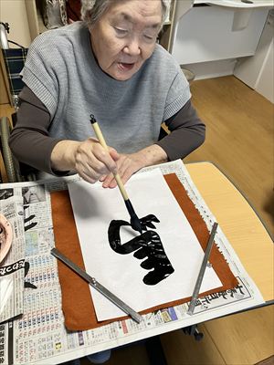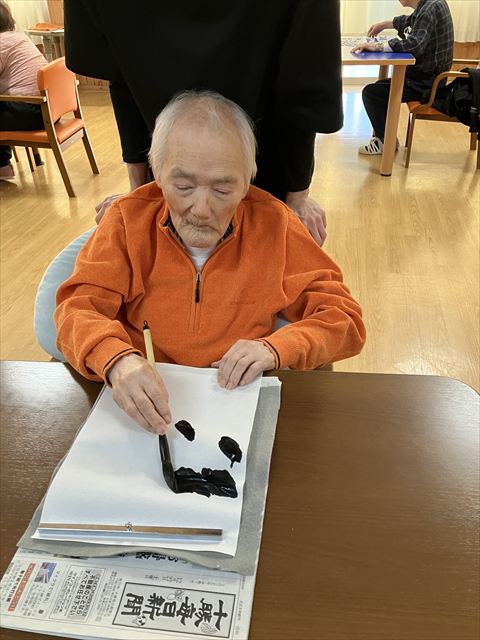 職員が見守る中しっかりと筆を取っております(*^▽^*)